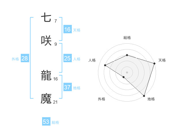 七咲 龍魔さんを姓名の画数から五運を鑑定