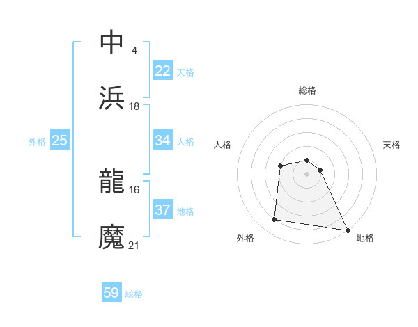 中浜 龍魔さんを姓名の画数から五運を鑑定
