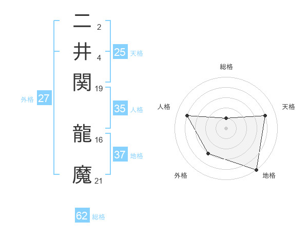 二井関 龍魔さんの総格は62画の1点!