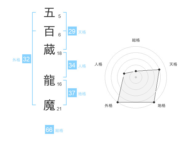 五百蔵 龍魔さんの外格は32画の5点!