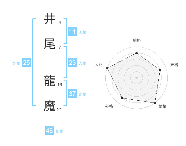 井尾 龍魔さんの天格は11画の4点!