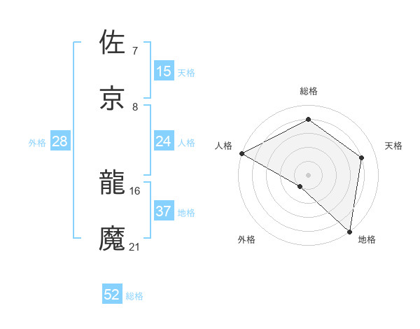 佐京 龍魔さんを姓名の画数から五運を鑑定