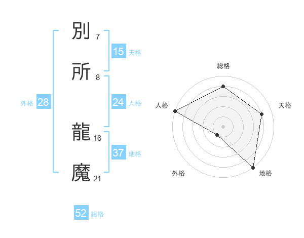 別所 龍魔さんの総格は52画の4点!