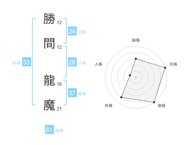 勝間 龍魔さんの総格は61画の3点!
