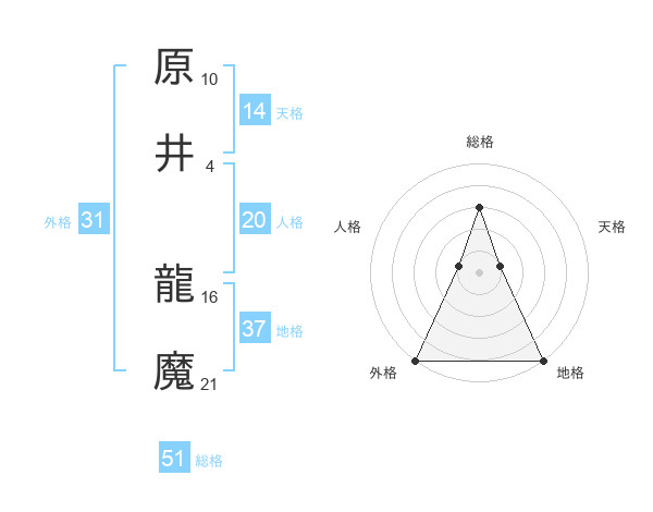 原井 龍魔さんを姓名の画数から五運を鑑定