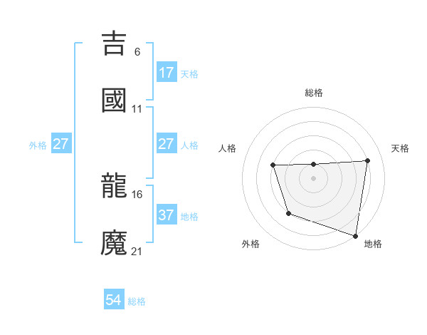 吉國 龍魔さんを姓名の画数から五運を鑑定