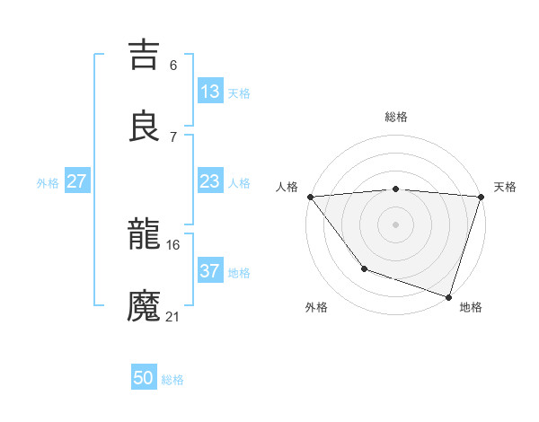 吉良 龍魔さんの総格は50画の2点!