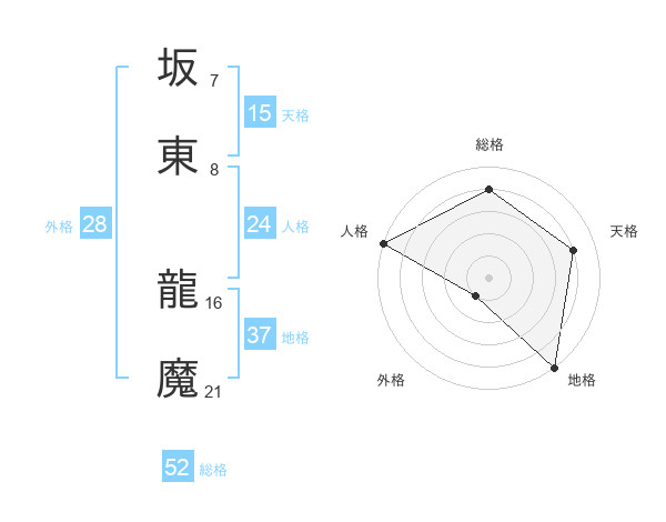 坂東 龍魔さんを姓名の画数から五運を鑑定