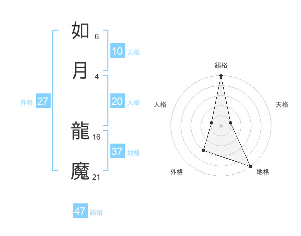 如月 龍魔さんを姓名の画数から五運を鑑定