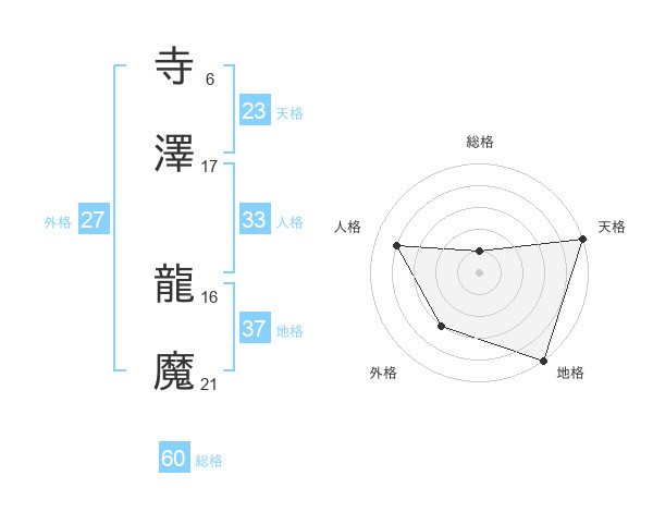 寺澤 龍魔さんの総格は60画の1点!