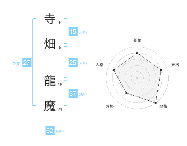 寺畑 龍魔さんの総格は52画の4点!