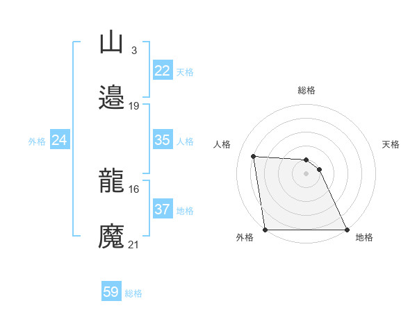 山邉 龍魔さんを姓名の画数から五運を鑑定