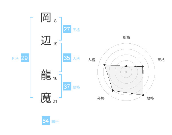 岡辺 龍魔さんの地格は37画の5点!