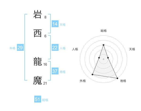 岩西 龍魔さんの総格は51画の3点!