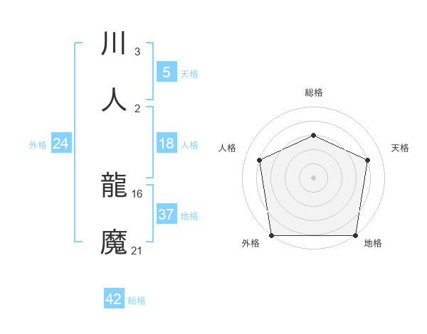 川人 龍魔さんの天格は5画の4点!
