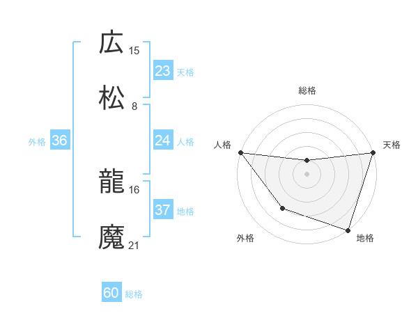 広松 龍魔さんの総格は60画の1点!