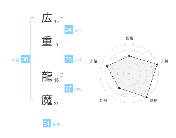 広重 龍魔さんを姓名の画数から五運を鑑定