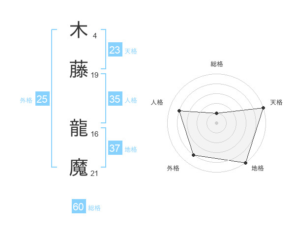 木藤 龍魔さんを姓名の画数から五運を鑑定