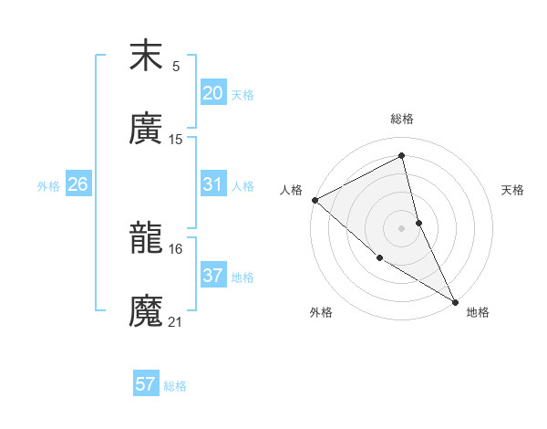 末廣 龍魔さんを姓名の画数から五運を鑑定