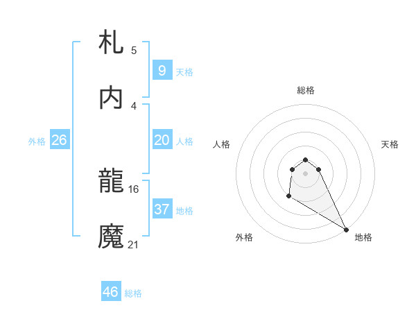 札内 龍魔さんを姓名の画数から五運を鑑定