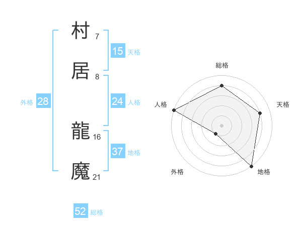 村居 龍魔さんの総格は52画の4点!
