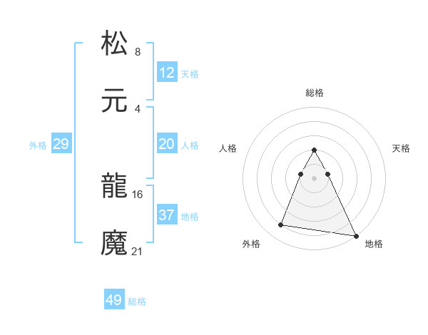 松元 龍魔さんを姓名の画数から五運を鑑定