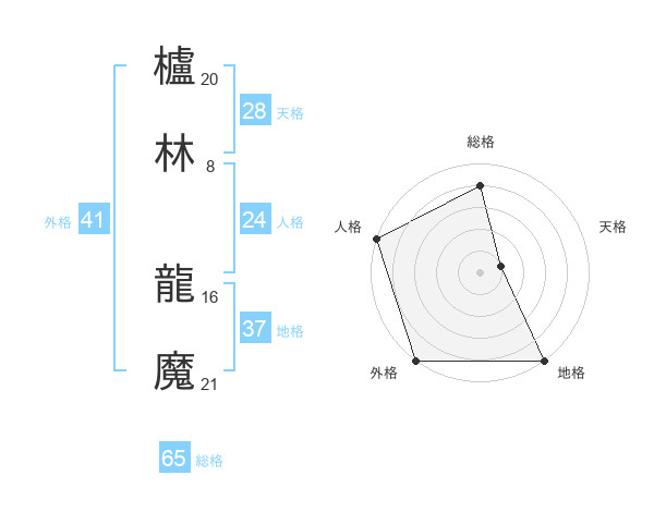 櫨林 龍魔さんの総格は65画の4点!