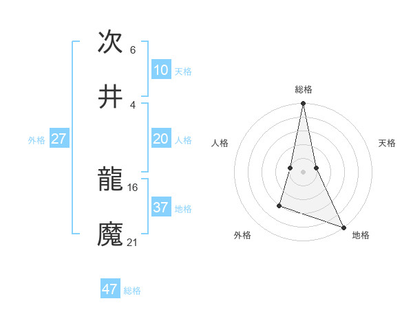 次井 龍魔さんの総格は47画の5点!