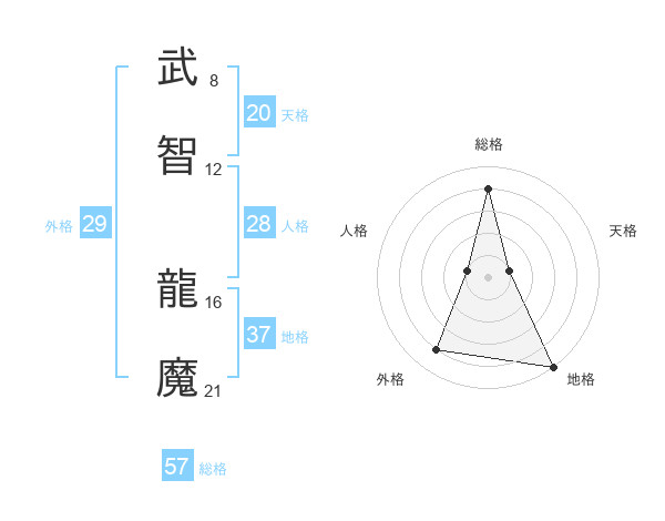 武智 龍魔さんの総格は57画の4点!