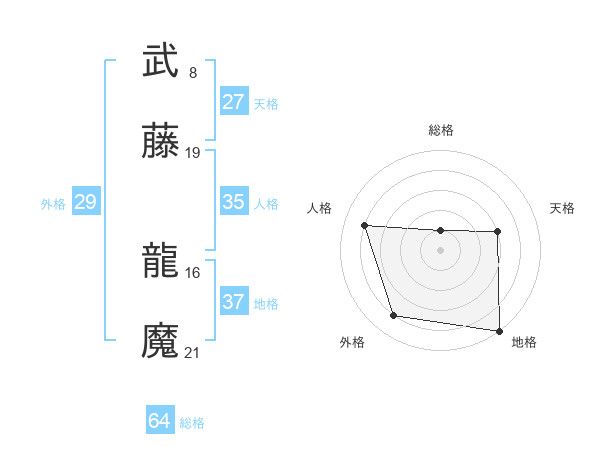 武藤 龍魔さんの地格は37画の5点!