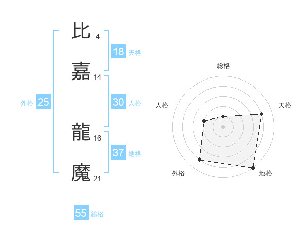 比嘉 龍魔さんの総格は55画の1点!