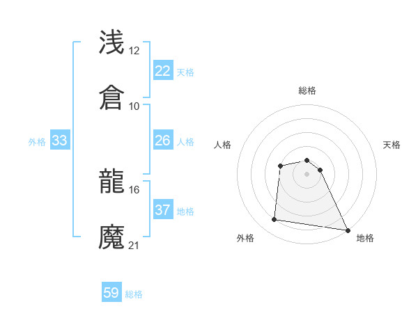 浅倉 龍魔さんの総格は59画の1点!