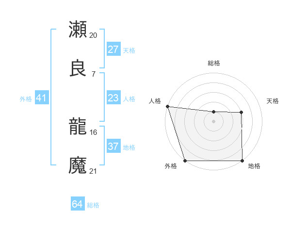 瀬良 龍魔さんの総格は64画の1点!