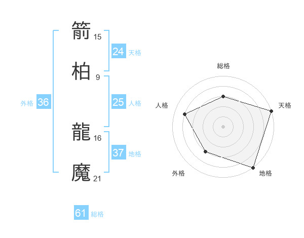 箭柏 龍魔さんの天格は24画の5点!