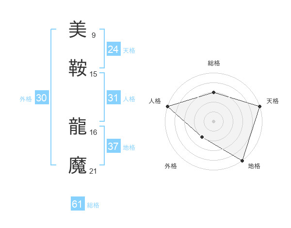 美鞍 龍魔さんを姓名の画数から五運を鑑定
