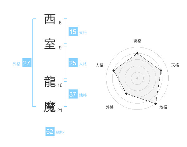 西室 龍魔さんの総格は52画の4点!