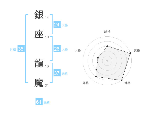 銀座 龍魔さんを姓名の画数から五運を鑑定