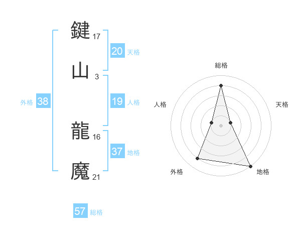 鍵山 龍魔さんを姓名の画数から五運を鑑定