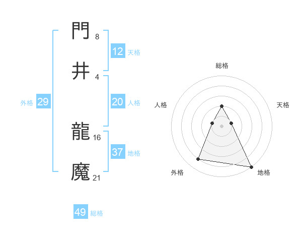 門井 龍魔さんの総格は49画の2点!