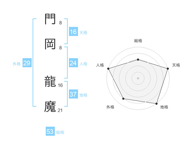 門岡 龍魔さんを姓名の画数から五運を鑑定