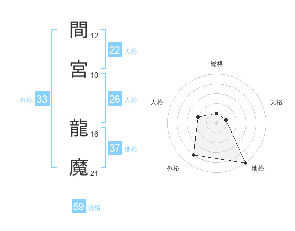 間宮 龍魔さんを姓名の画数から五運を鑑定
