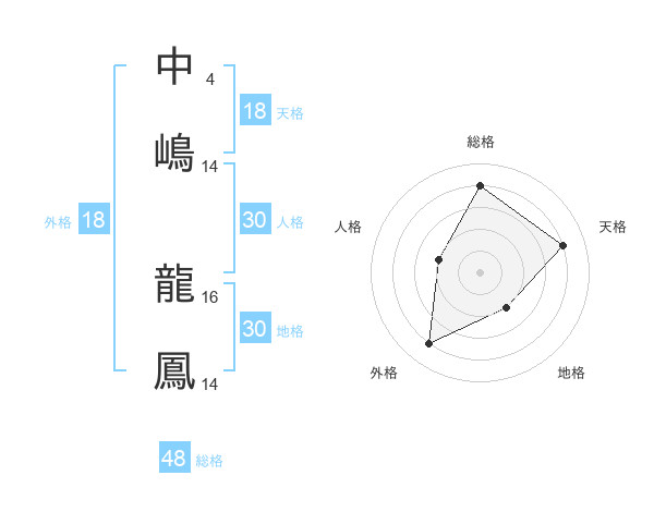 中嶋 龍鳳さんの総格は48画の4点!