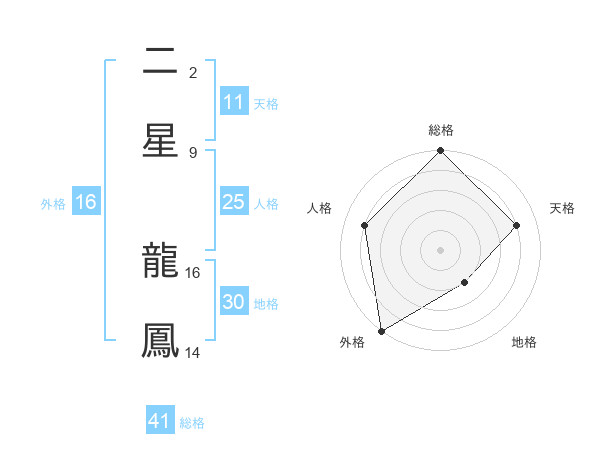 二星 龍鳳さんの天格は11画の4点!
