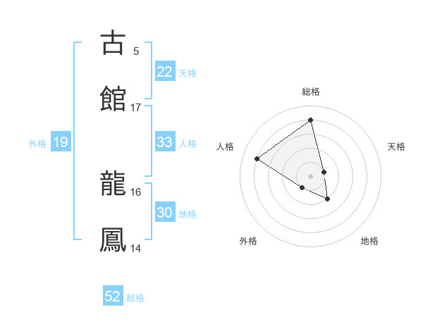 古館 龍鳳さんを姓名の画数から五運を鑑定