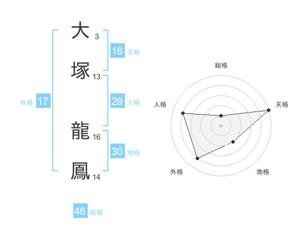 大塚 龍鳳さんの天格は16画の5点!