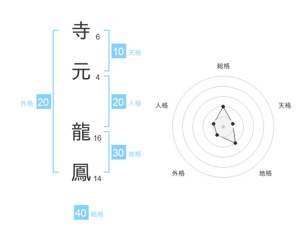 寺元 龍鳳さんの総格は40画の2点!