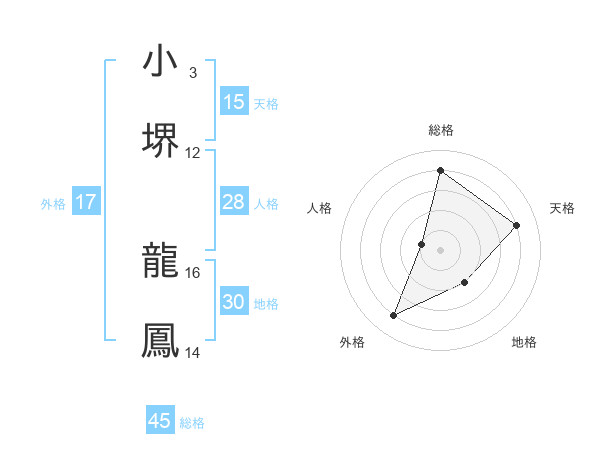 小堺 龍鳳さんを姓名の画数から五運を鑑定