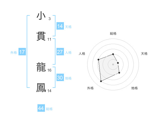 小貫 龍鳳さんを姓名の画数から五運を鑑定