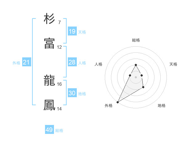 杉富 龍鳳さんの総格は49画の2点!