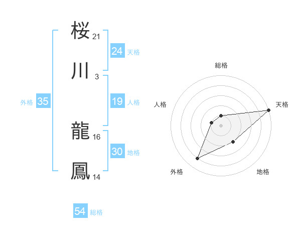 桜川 龍鳳さんの天格は24画の5点!